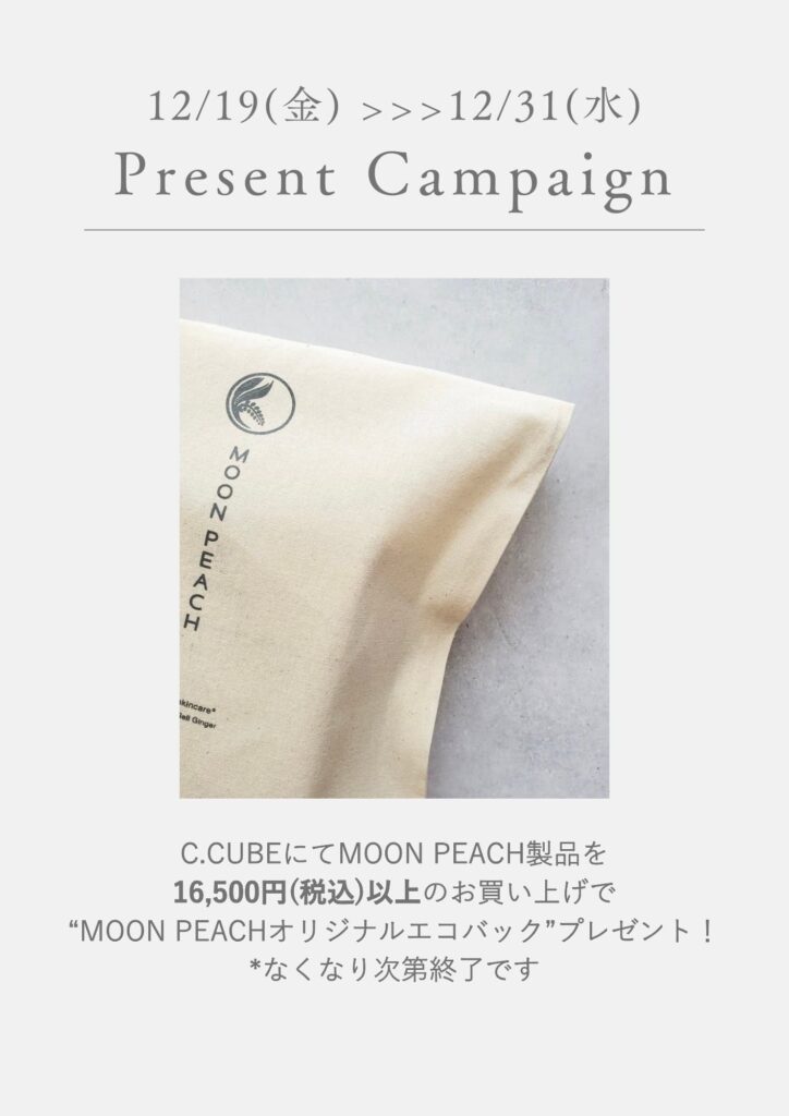 期間中に、C.CUBE様にてMOON PEACHアイテムを16,500円(税込)以上ご購入いただいた方へ『オリジナルエコバック』のプレゼントをご用意しております。
