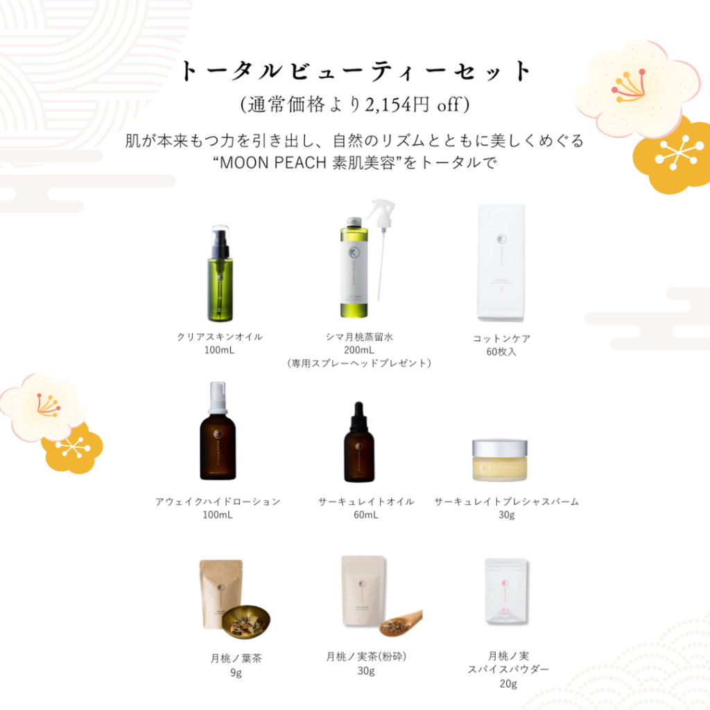 日頃の感謝を込めて、今年も素肌美クレンジング洗顔から保湿ケア、月桃茶までトータルで素肌美容をお楽しみいただけるお得な『トータルセット』を販売いたします。