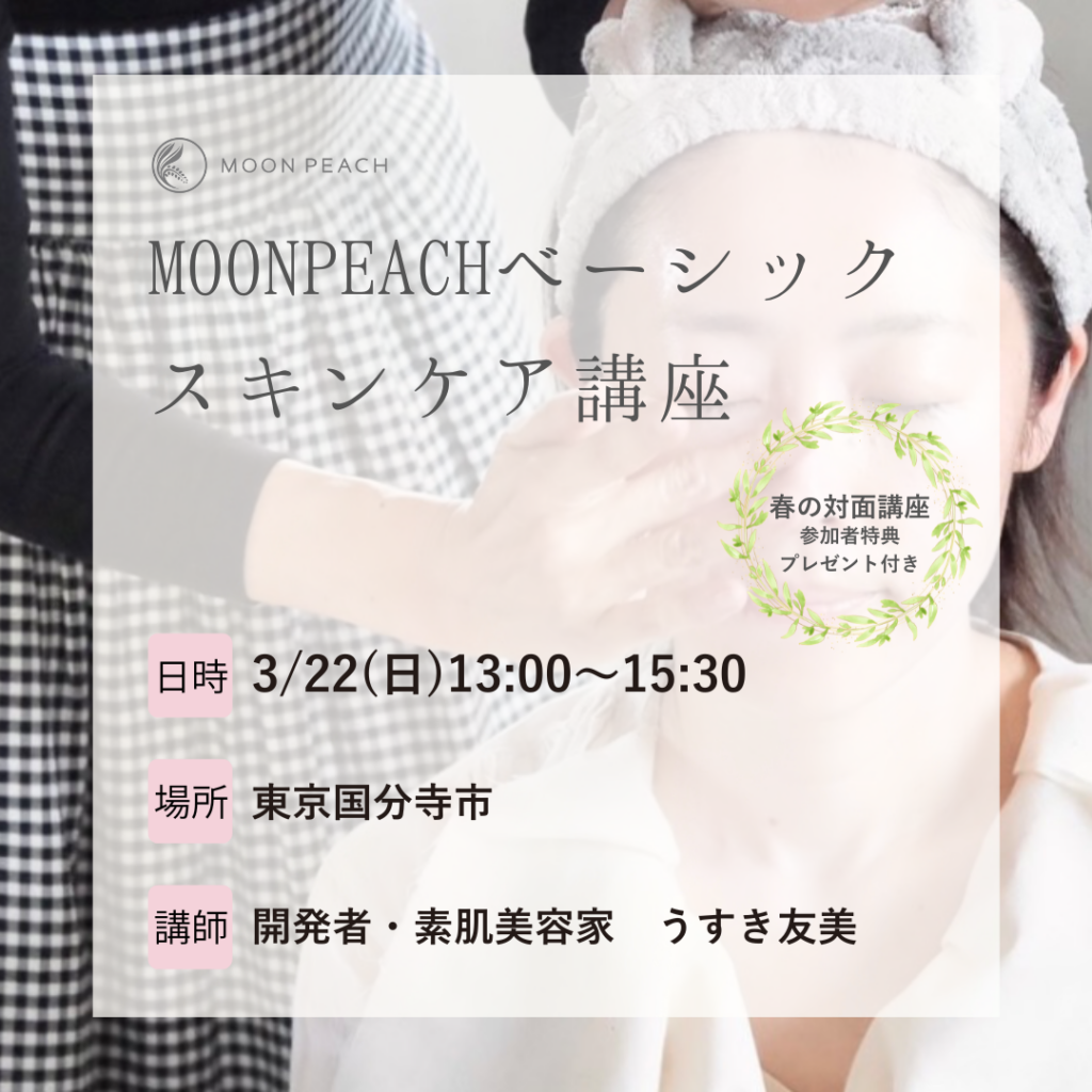 MOON PEACH開発者・素肌美容家うすき友美による対面スキンケア講座の受付を開始いたしました。